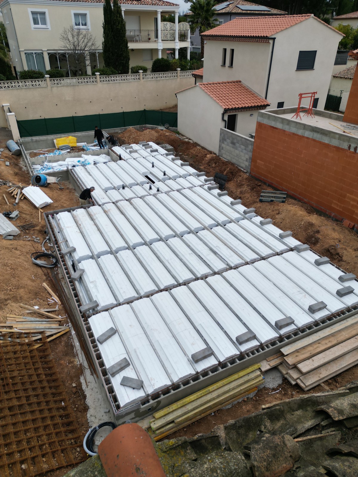 Composée de plusieurs volumes imbriqués, la construction offre un jeu architectural dynamique qui structure les espaces tout en apportant du caractère à l’ensemble. Avec ces différentes toiture renforce son esthétique résolument contemporaine et met en valeur la pureté des lignes.